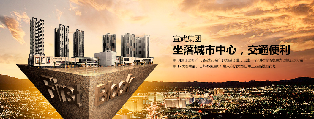 徐州宣武集團(tuán)有限公司成立于1985年,占地100余畝,建筑面積26萬(wàn)平方米,有商鋪8000余間,從業(yè)人員3.5萬(wàn)余人。經(jīng)營(yíng)服裝、鞋帽、針織、百貨、電子電器、文體辦公、床上用品、鐘表眼鏡等十八大類(lèi)商品,具有貨源足、品種全、信息靈、價(jià)格廉、信譽(yù)好的經(jīng)營(yíng)特色,輻射淮海經(jīng)濟(jì)區(qū),年交易額達(dá)200余億元。為全國(guó)具有知名度和影響力的大市場(chǎng)之一。被徐州市政府確定為重點(diǎn)批發(fā)市場(chǎng)、重點(diǎn)財(cái)源培育單位和超百億元重點(diǎn)培育市場(chǎng)。