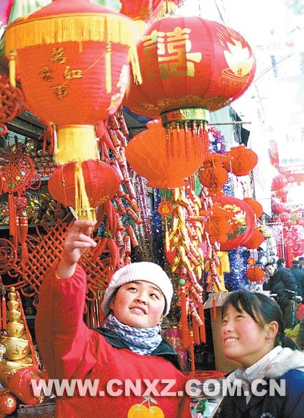 新年即將來(lái)臨,象征著喜慶吉祥的節(jié)日飾品在我市各大市場(chǎng)和商場(chǎng)開(kāi)始熱銷(xiāo)。圖為市民在宣武市場(chǎng)選購(gòu)節(jié)日飾品。